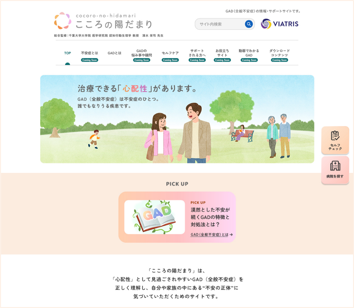 メンタルヘルス疾患啓発サイト「こころの陽だまり」 全般不安症(GAD)の新規コンテンツを拡充し、リニューアル
