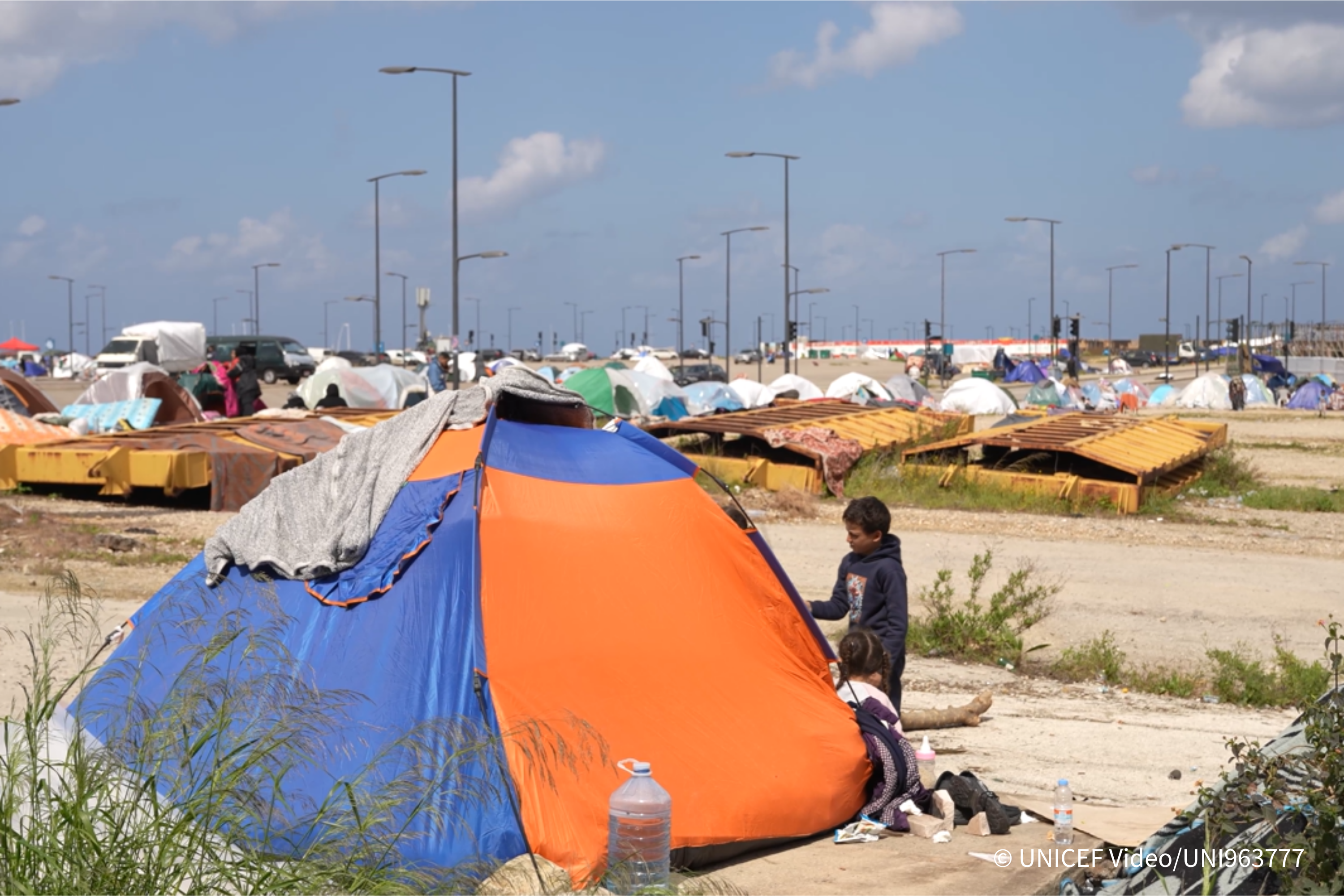 衝突が激化するレバノンでは、多くの家族が車の中や路上で寝起きをしている(レバノン、2026年3月16日撮影) (C) UNICEF 2026 Video/UNI963777