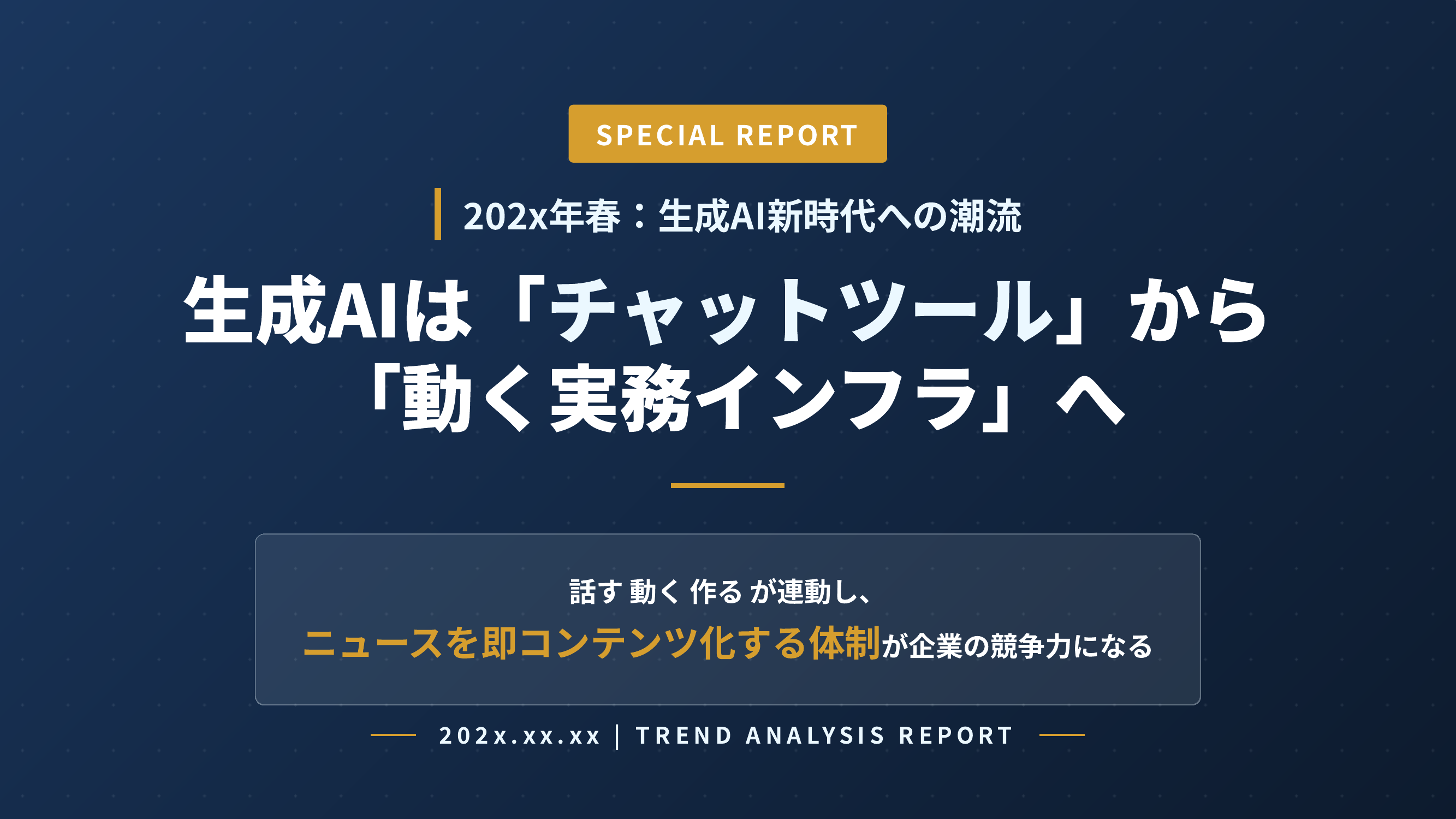 SaaS企業にとって、新機能リリースのたびにアップデート案内を作り、商談ごとに顧客の業界に合わせたセールスデックをカスタマイズし、トレンドニュースをタイムリーに発信するといった業務は日常的に発生します。こうした「頻度が高く、かつバリエーション展開が必要な資料作成」を限られたリソースでこなすことの難しさが、多くのSaaS・IT企業に共通する負担となっています。