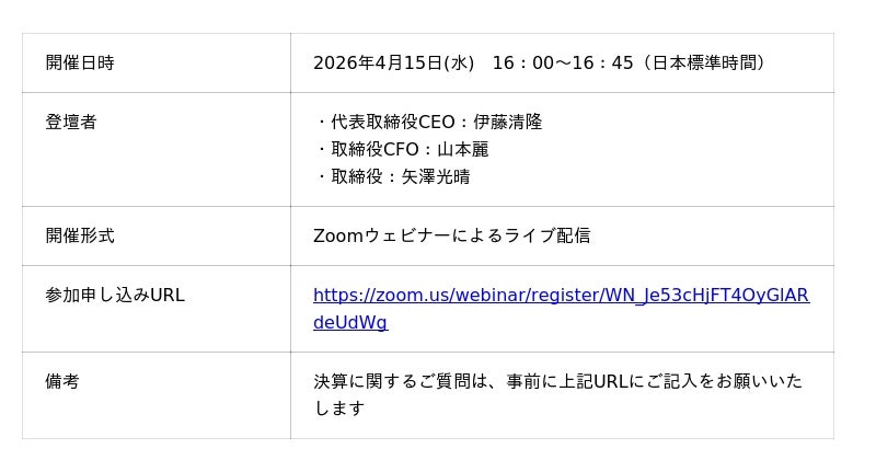 2025年12月期通期決算説明会は以下の通り開催いたします。