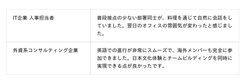 企業の組織課題を“料理体験”で解決 英語対応・カスタマイズ型の研修プログラムを新たに提供開始