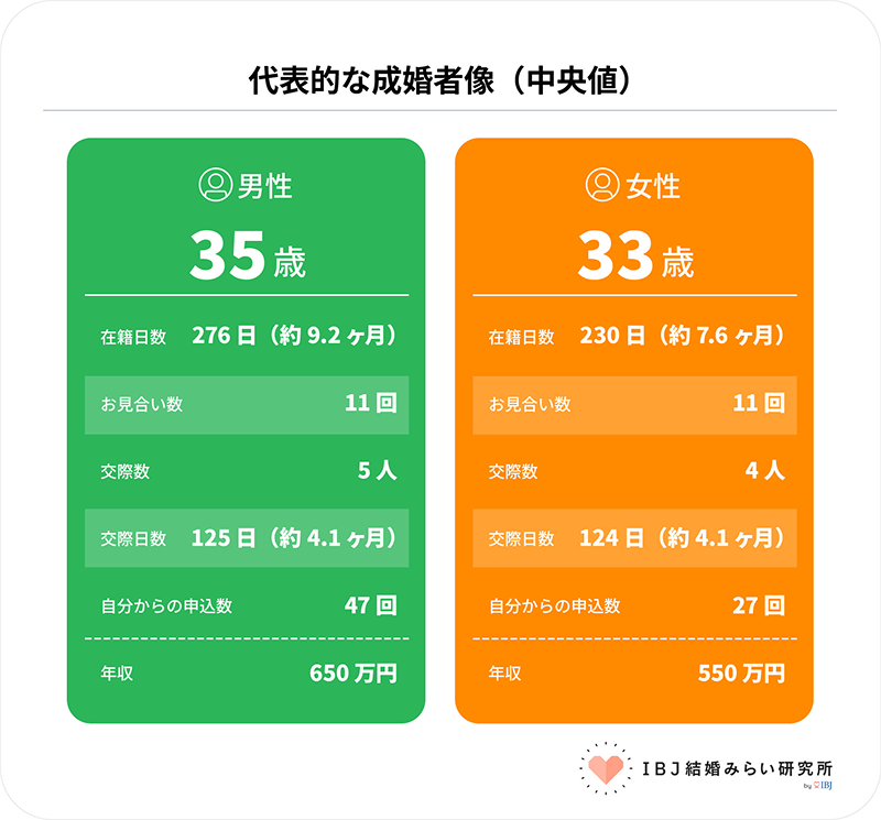約半年~9ヶ月という活動期間を決めて集中し、平均して11人とお見合いをして相手を見極め、「この人だ」と決めてからは約4ヶ月で結婚の決断をしています。