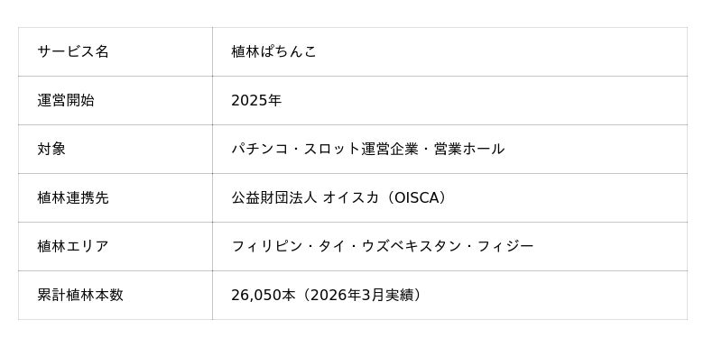 「植林ぱちんこ」を運営する株式会社 地球のために(本社:大阪市北区梅田、代表取締役CEO:内藤 勝好)は、2026年4月6日より、益子店(栃木県芳賀郡益子町)への「植林ぱちんこ」導入を開始いたします。