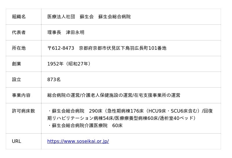 蘇生会総合病院(本院:京都市伏見区、理事長:津田永明)では、外科・泌尿器科領域を中心に手術支援ロボット「ダビンチXi(Da Vinci Xi)」を導入し、2026年3月、初のロボット支援手術を実施しました。