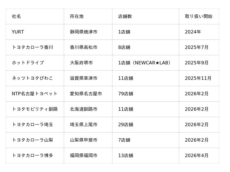 株式会社YURT(読み方:ユルト、本社:静岡県焼津市、共同代表:藁科 憲佑・上田 隼也、以下YURT)とトヨタカローラ博多株式会社(本社:福岡県福岡市、代表:久恒 兼孝、以下トヨタカローラ博多)は、シエンタ専用車中泊キット「VANLIFE ROOMKIT」の取り扱いをトヨタカローラ博多の13店舗で2026年4月18日(土)に開始します。VANLIFE ROOMKITの九州エリアでの取り扱いは今回が初めてです。またトヨタカローラ博多は同日、クルマの新しい価値を提案する新店舗「CARMINE八幡西」をオープンします。デモ車両はCARMINE八幡西に常設展示し、予約不要でご覧いただけます。