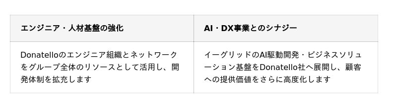 株式会社イーグリッド(本社:島根県出雲市、代表取締役CEO:小村 淳浩、以下「イーグリッド」)は、2026年4月1日付をもって、株式会社Donatello(本社:島根県出雲市、代表取締役:吉岡 祐太、以下「Donatello」)の発行済全株式を取得し、同社を完全子会社化いたしましたのでお知らせします。