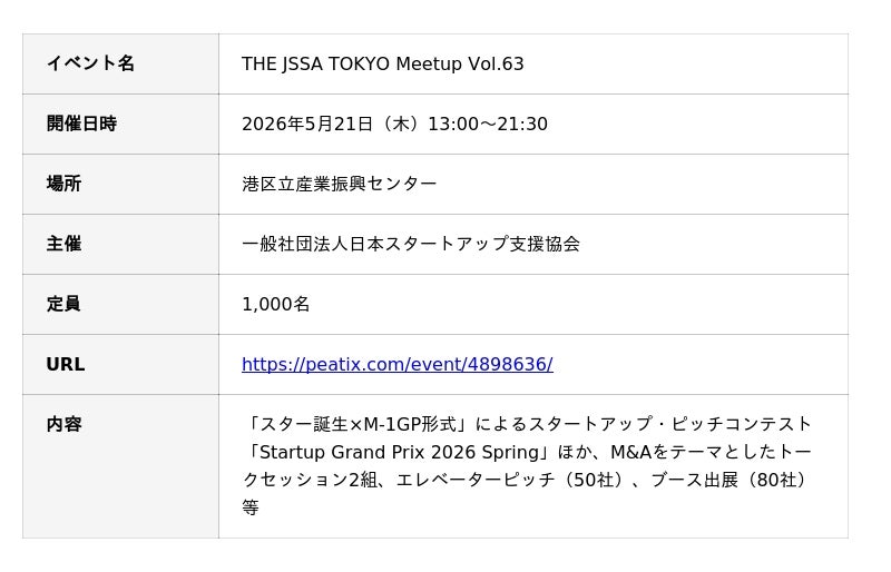 一般社団法人日本スタートアップ支援協会主催「THE JSSA TOKYO Meetup Vol.63」審査員にも選出