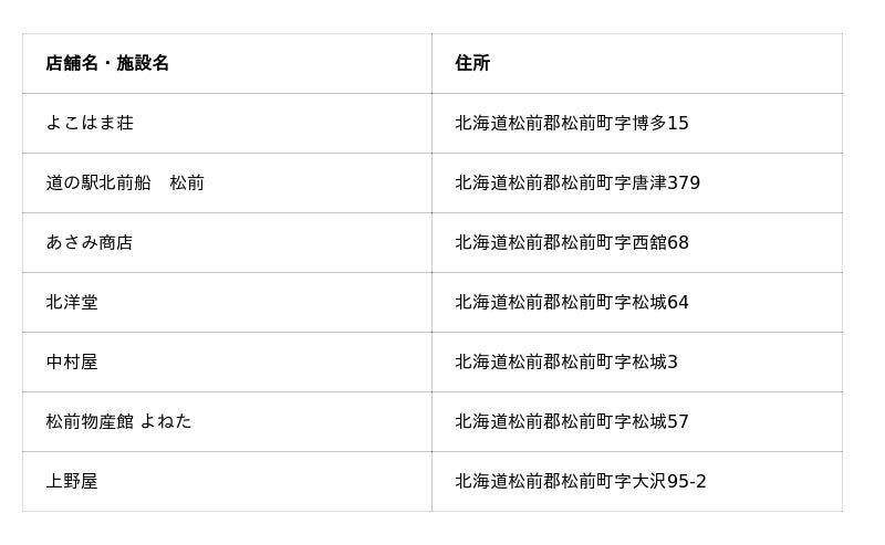 ■北海道松前町で「ふるまちPay」を利用できる店舗や施設