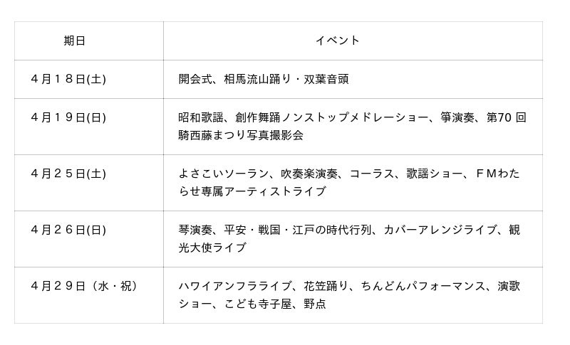 開催日:令和8年4月18日(土)、19日(日)、25日(土)、26日(日)、29日(水・祝)