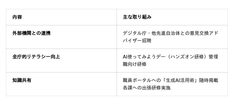進化し続けるAIの最新知見を迅速に共有し、職員一人ひとりのリテラシーを底上げすることで、業務でのAI活用を加速させています。