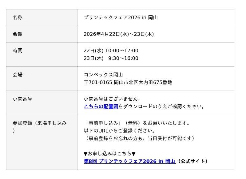プリンテックフェア2026 in 岡山 [4/22~4/23開催]に出展します