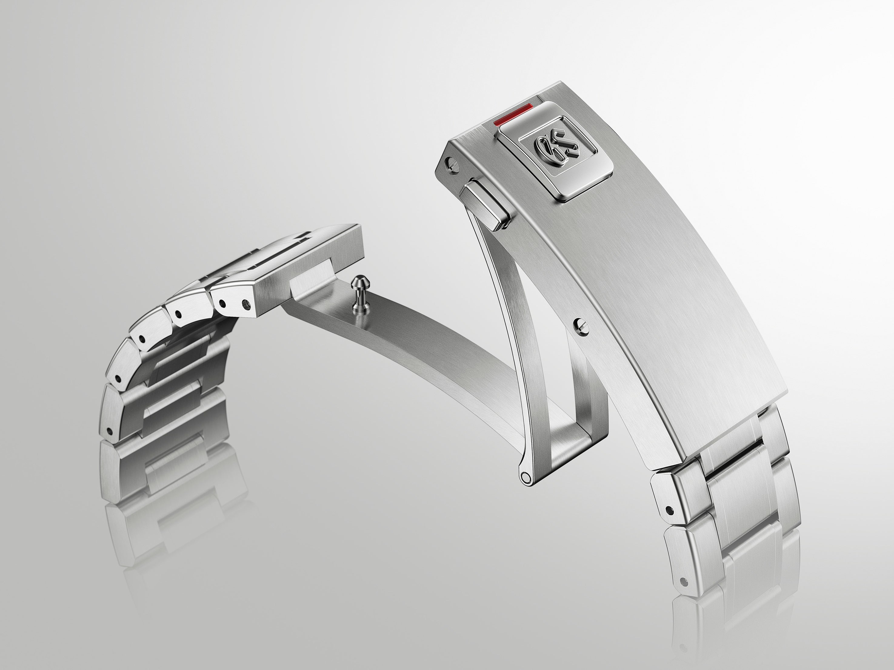 2mm×3段階の6mmのアジャストができることに加えて、ダイビングでの使用を想定して、エクステンダー部分でさらに18mm拡張することができ、合計で24mmのサイズ調整が可能となりました。さらに、GSロゴの入ったワッペン部分に中留開閉のロック機能を持たせ、意図せず中留のロックが解除されてしまうことを防ぎます。