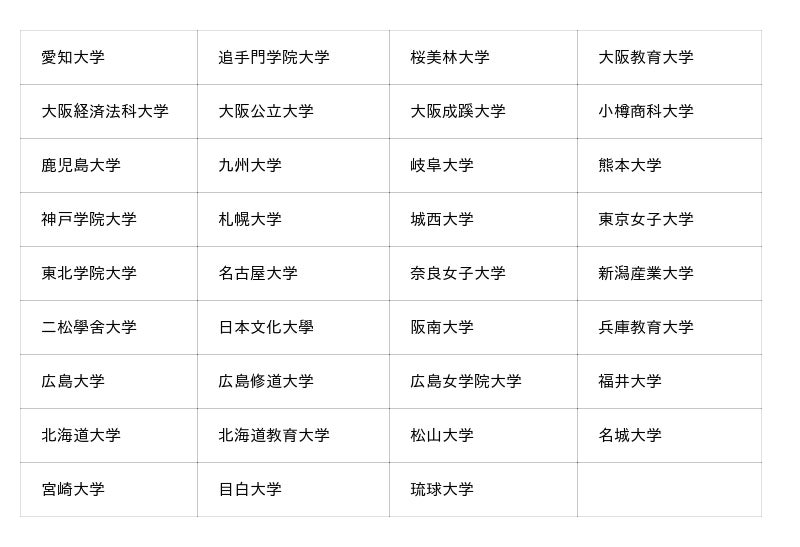今年度は、当社が単位取得型の講義を提供している大学を中心とした、以下の37大学の学生を対象に募集をいたします。