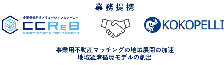 本業務提携は、ココペリ社が持つ全国の地域金融機関や地域企業のネットワークと、事業用不動産(CRE)に特化したマッチングを強みとする当社が連携することで、地域社会が抱える課題解決に貢献する新たな事業を共同で開発・発展させることを目的としています。両社のシナジーを最大化し、持続可能な地域社会の実現を目指してまいります。