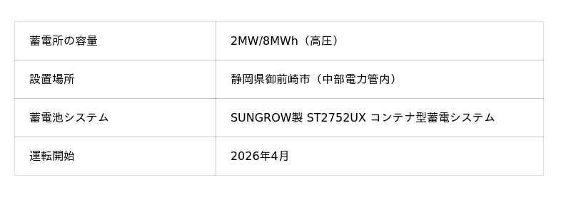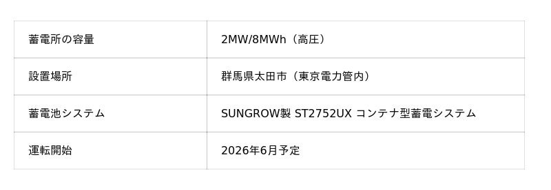 また、東急パワーサプライと当社は今後の取り組みとして、2026年5月に三重県津市、同年6月に群馬県太田市において、それぞれ出力2MW/容量8MWhの高圧系統用蓄電所の営業運転開始を目指しております。