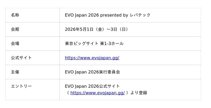 ■「EVO Japan 2026 presented by レバテック」開催概要