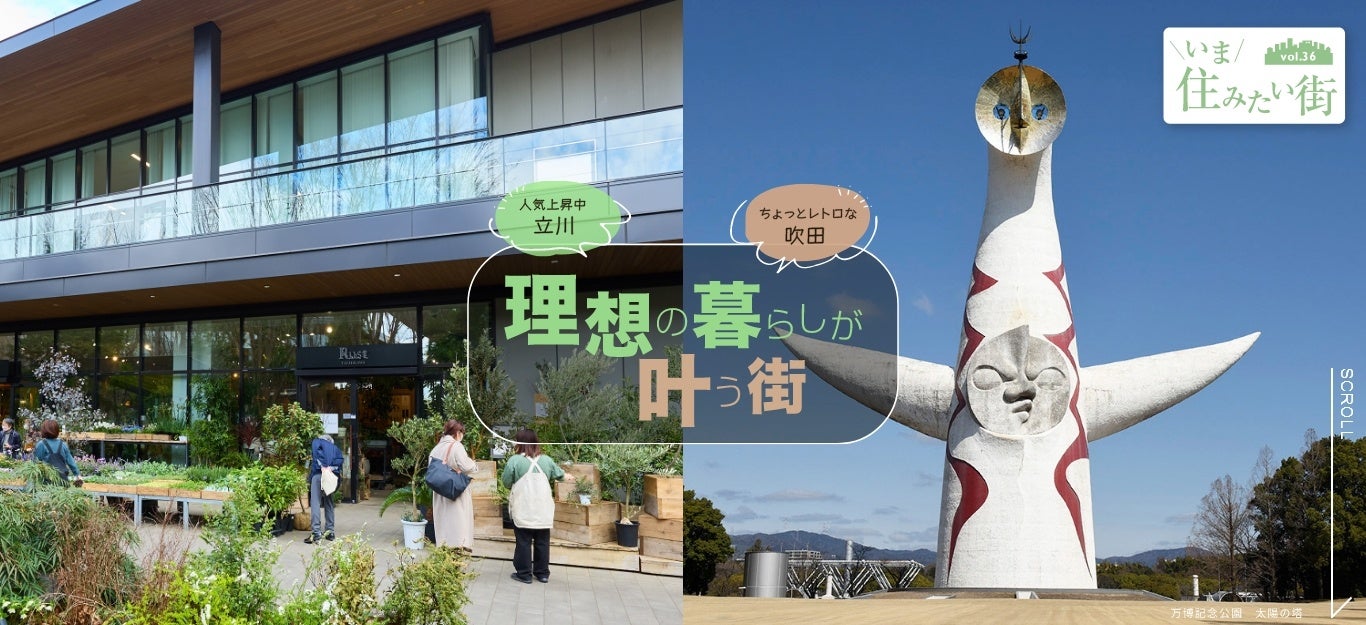 連載企画「いま住みたい街」では、家族で理想の暮らしが送りやすい街として、立川(東京)と吹田(大阪)を提案。GREEN SPRINGSなど大型複合施設が誕生し、駅周辺ですべてが完結するようになった立川。子育て世代をはじめ、多くの人にとって理想の暮らしを描きやすい街といえるでしょう。