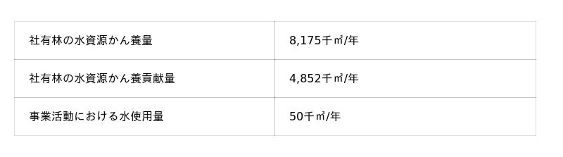 当社は引き続き、社有林の適切な保全・管理を通じて水資源の保全に貢献してまいります。