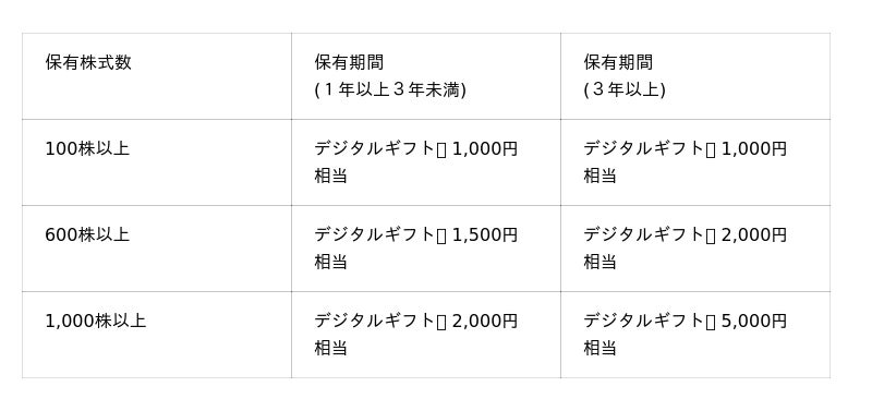 (注2)株式会社デジタルプラスが提供するデジタルギフト(R)を指します。株主様は交換品の中からお好きな優待品目をお選びいただけます。