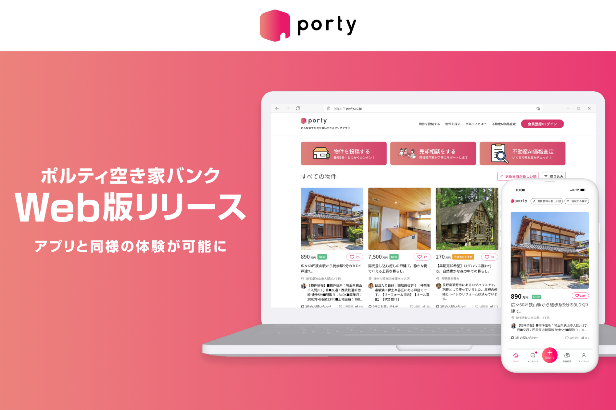このチャネル強化の基盤として、本日Web版「ポルティ空き家バンク」を正式リリースいたしました。