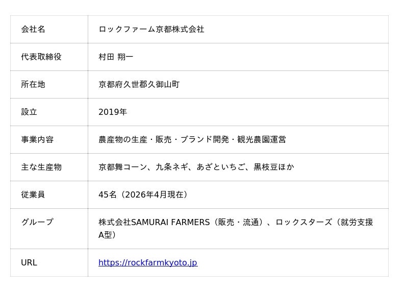 目当ては、ロックファーム京都が生産する白いとうもろこし「京都舞コーン」。生でそのまま食べられる糖度最大22.4度のフルーツコーンに、朝5時から収穫・当日出荷という鮮度への執着が重なり、「ここでしか味わえない体験」を求めて人が集まる。