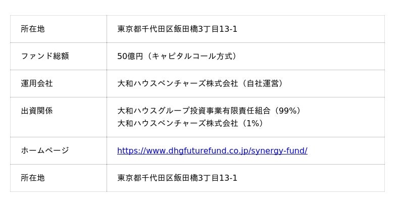 ■シナジーファンド(正式名:大和ハウスグループ共創共生1号投資事業有限責任組合)の概要