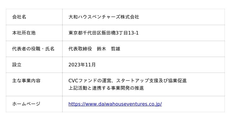 1.大和ハウスベンチャーズ株式会社