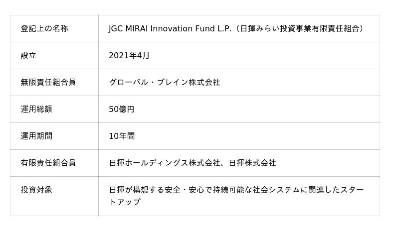 <JGC MIRAI Innovation Fundについて>