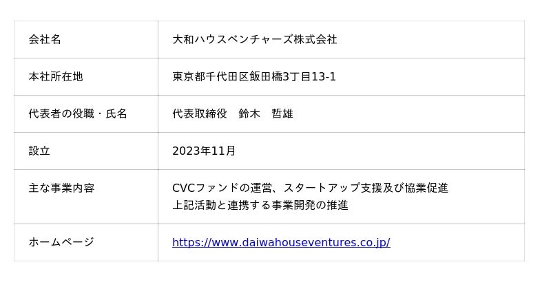 1.大和ハウスベンチャーズ株式会社