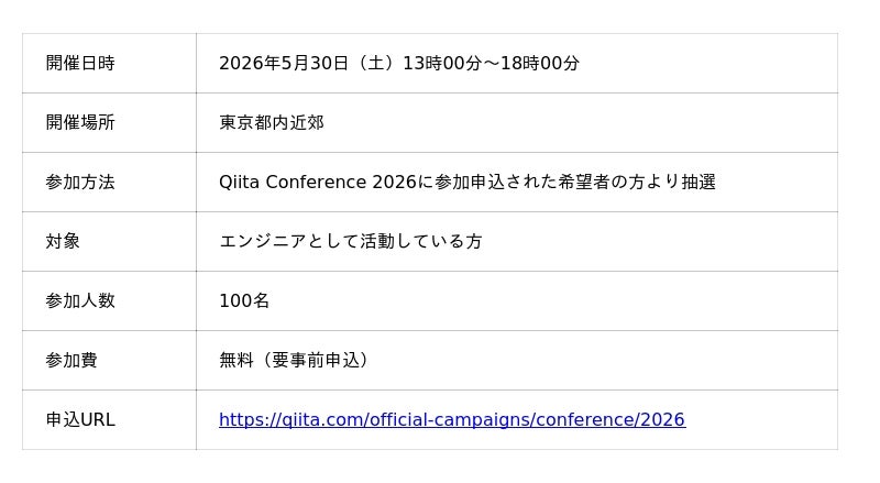 初のオフラインイベントも開催!Qiita Conference 2026 アフターイベント!