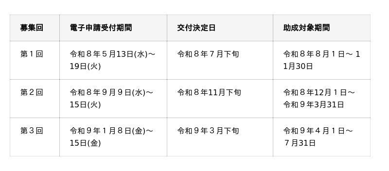 ※ 申請は、国が提供する電子申請システム「Jグランツ」にて受付予定です。