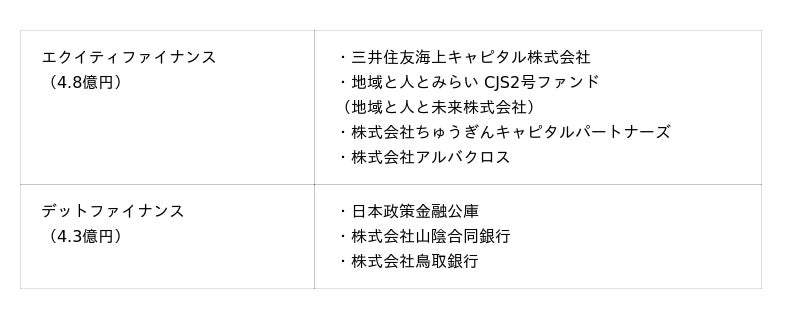 今回の資金調達における投資家および金融機関