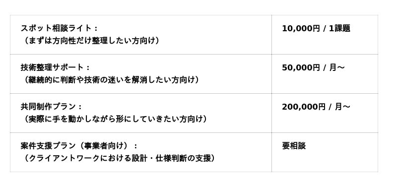 Webサイトを自ら制作・運用したい事業者・個人に向け、判断整理・技術相談・構成設計を伴走支援