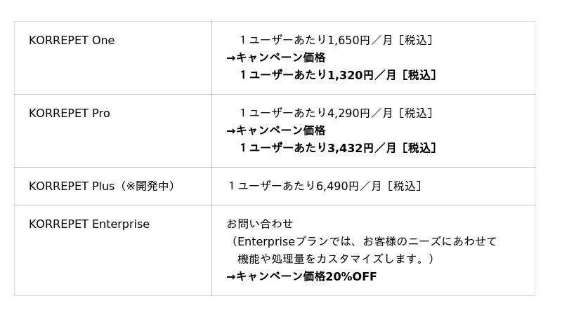 https://korrepet.com/pricing/)をご参照ください。