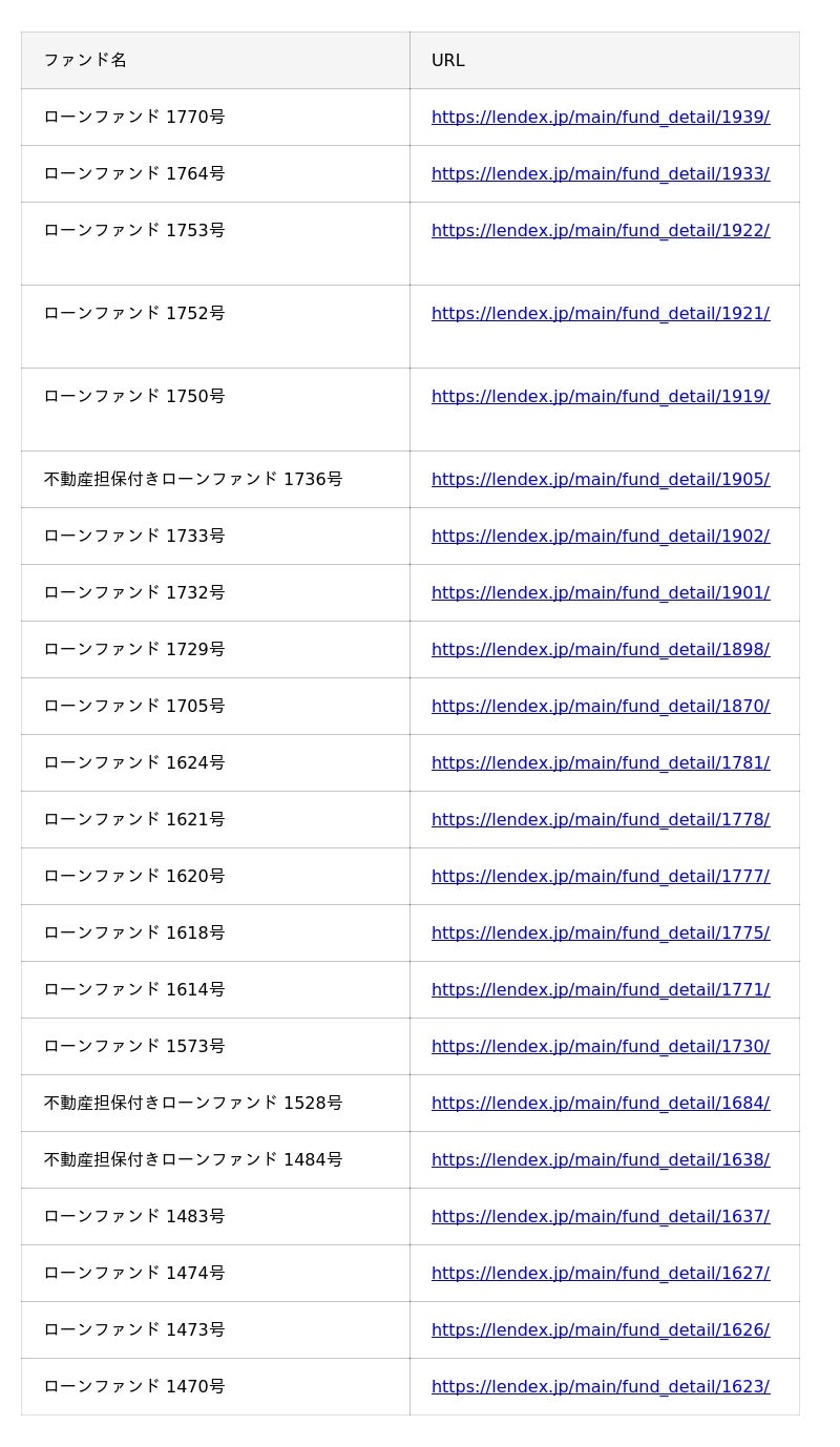 ■2026年3月のレンデックス(LENDEX)の償還ファンド一覧