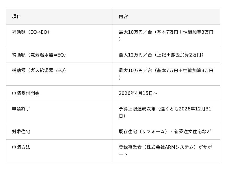 こうした背景を受け、経済産業省は「給湯省エネ2026事業」を実施し、導入促進を図っています。
