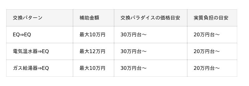 本補助金により、エコキュートへの交換工事が最大12万円(※1)の補助対象となります。