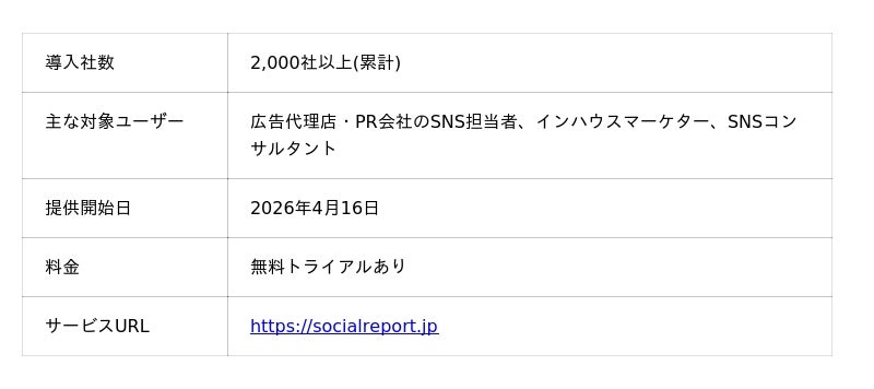 Instagram分析SaaS「hashout」を運営する株式会社hashout(本社:東京都豊島区/代表:落合匠)は、サービス名を「Social Report」に改め、管理画面を全面リニューアルしました。2,000社以上への導入を通じて蓄積したユーザーの声を軸に設計を根本から見直し、2026年4月15日より新バージョンの提供を開始します。