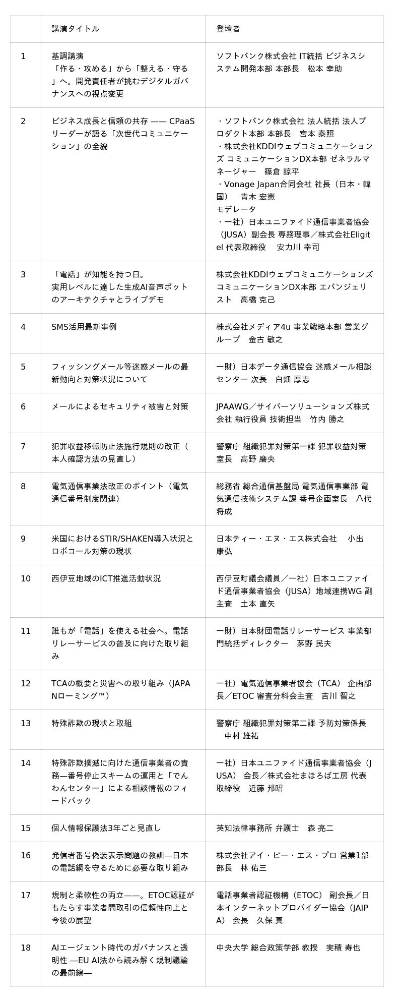 【後援】 電話事業者認証機構(ETOC)、一般社団法人電気通信事業者協会(TCA)、一般社団法人日本インターネットプロバイダー協会(JAIPA)、一般社団法人テレコムサービス協会(TELESA)、一般社団法人日本ケーブルテレビ連盟(JCTA)、一般財団法人日本データ通信協会、Japan Anti-Abuse Working Group(JPAAWG)、ソフトバンク株式会社