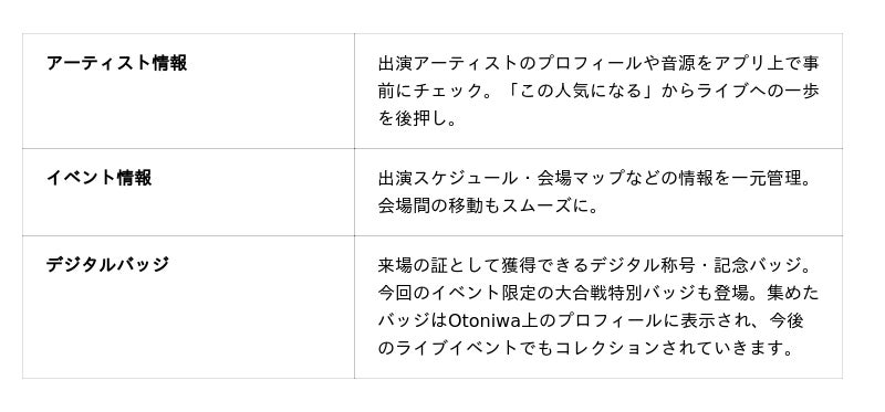 「小田原大合戦2026」でのプレ導入を経て、2026年後半には他のライブハウスへの展開を予定しています。AIが進化し続ける時代において、リアルな音楽体験の価値はますます高まると考えており、アーティスト・ライブハウス・リスナー三者が支え合う音楽エコシステムの実現を目指し、サービスの改善・拡大を続けてまいります。