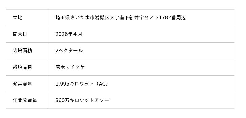 【岩槻ソーラー農園Phase1の概要】