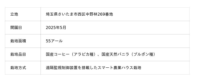 これら農園では、希少価値の高い国産コーヒー、国産天然バニラ、原木マイタケおよび各種露地野菜を、先進技術を活用したスマート農業の実践により栽培しています。また、農園立地地域の農家さまに各種営農支援サービスを提供することで、地域農業との共生・相互発展を目指しています。