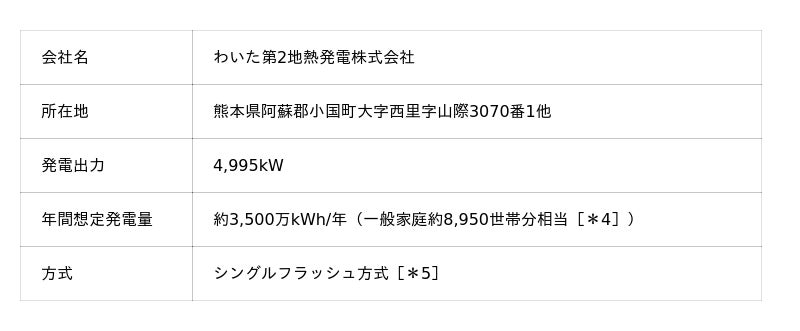 *2:わいた地区全30世帯の世帯主で構成された会社であり、小国町の地熱開発における地域調整を担う。
