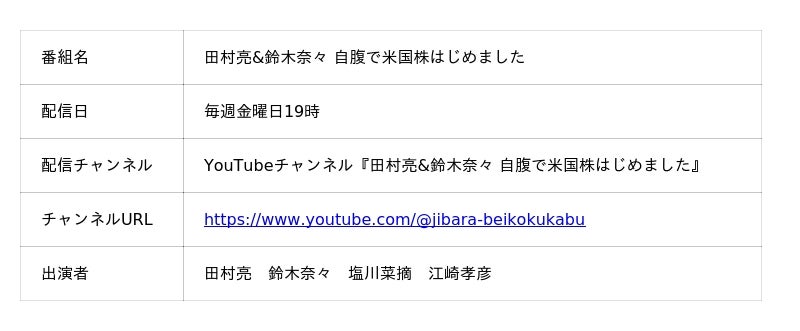 2026年4月、株式会社Wealth On(ウェルスオン)が企画・提供するYouTubeチャンネル「田村亮&鈴木奈々 自腹で米国株はじめました【Wealth On 提供】」は、チャンネル登録者数10万人を突破したことをお知らせします。