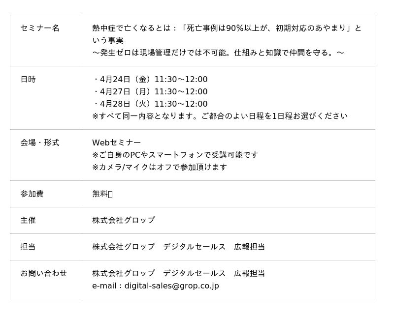 【4/24開催】熱中症「死亡事例は90%以上が、初期対応のあやまり」