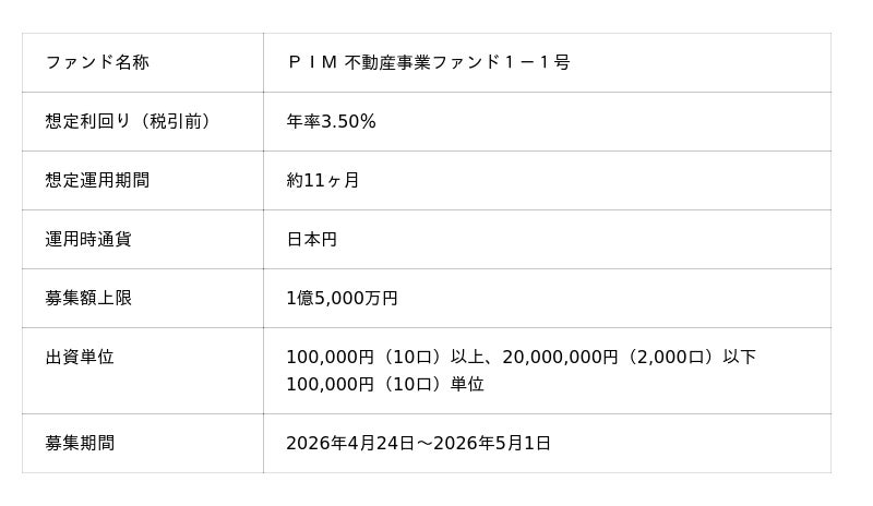 貸付型クラウドファンディング「Funvest」4/24より新ファンド「PIM 不動産事業ファンド1-1号」の募集開始