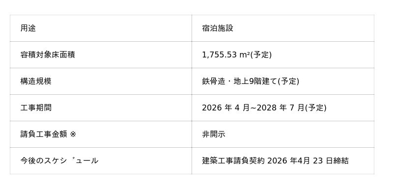 また、本件建築工事請負契約が来期(2027 年5月期)以降の売上、利益に及ぼす影響については、確定 した際に改めて開示いたします。