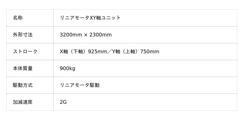 <高速・高精度 「リニアモータXY軸ユニット」の仕様>