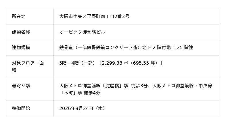 オービック御堂筋ビル外観 ※5階ワンフロア・4階の一部に入居
