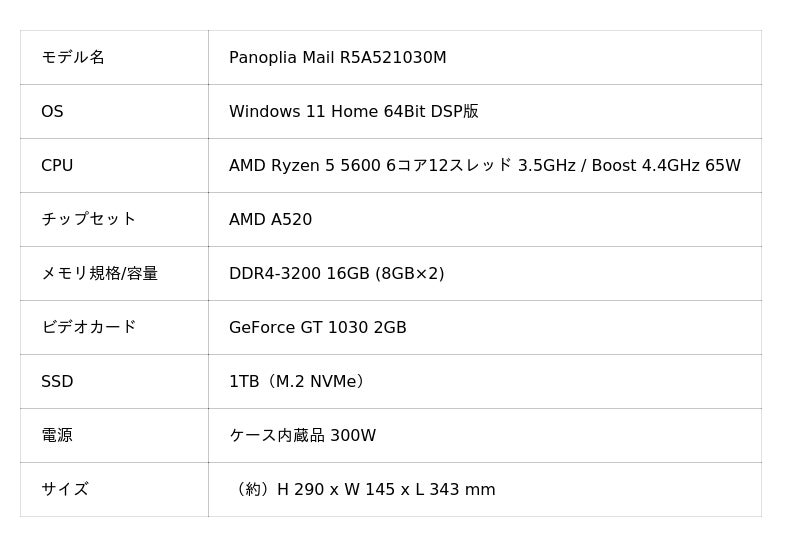 (AMD Ryzen5 5600、Windows 11 Home 64Bit DSP版搭載 限定30台)